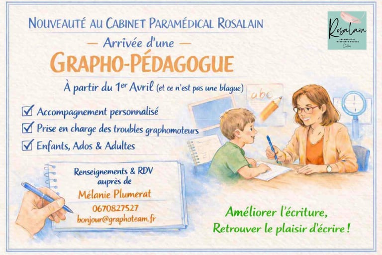En tant que professeur des écoles et graphopédagogue, je propose un accompagnement pédagogique individualisé visant l'amélioration du geste graphique et de l'écriture manuscrite auprès d'enfants, d'adolescents et d'adultes (en cas de douleurs, lenteur, illisibilité).
