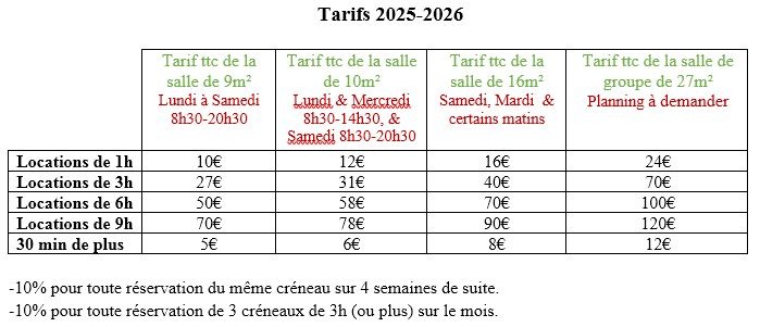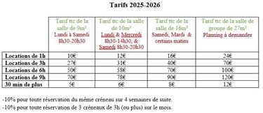 Tarif dégressif à partir de 10€ de l'heure ttc (voir tableau ci-dessous)
